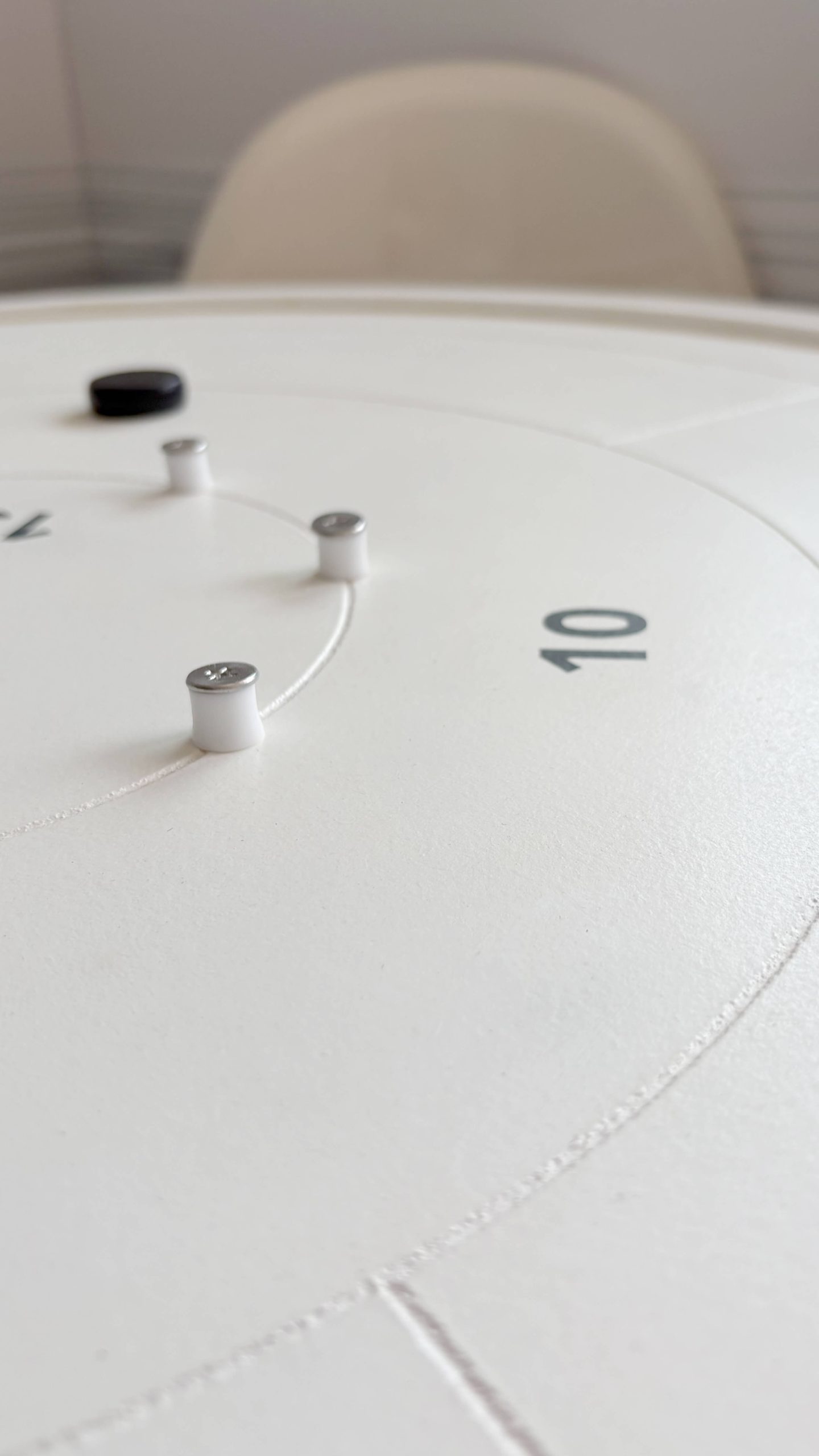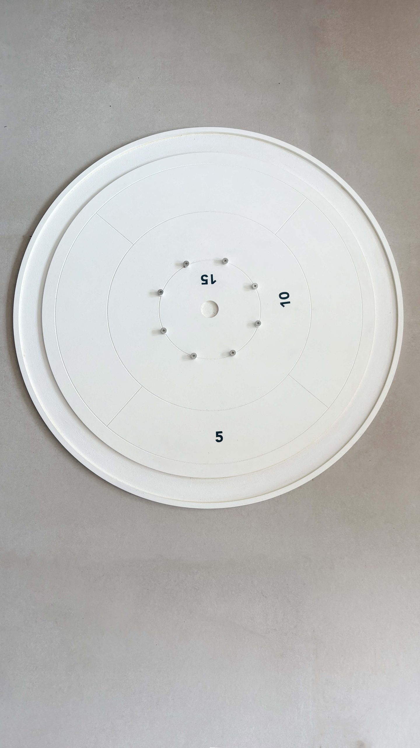 Tablero de crokinole de las medidas oficiales de torneo, la superficie de juego es de 66cm de diametro, las fichas recomendadas son de 3,2cm.