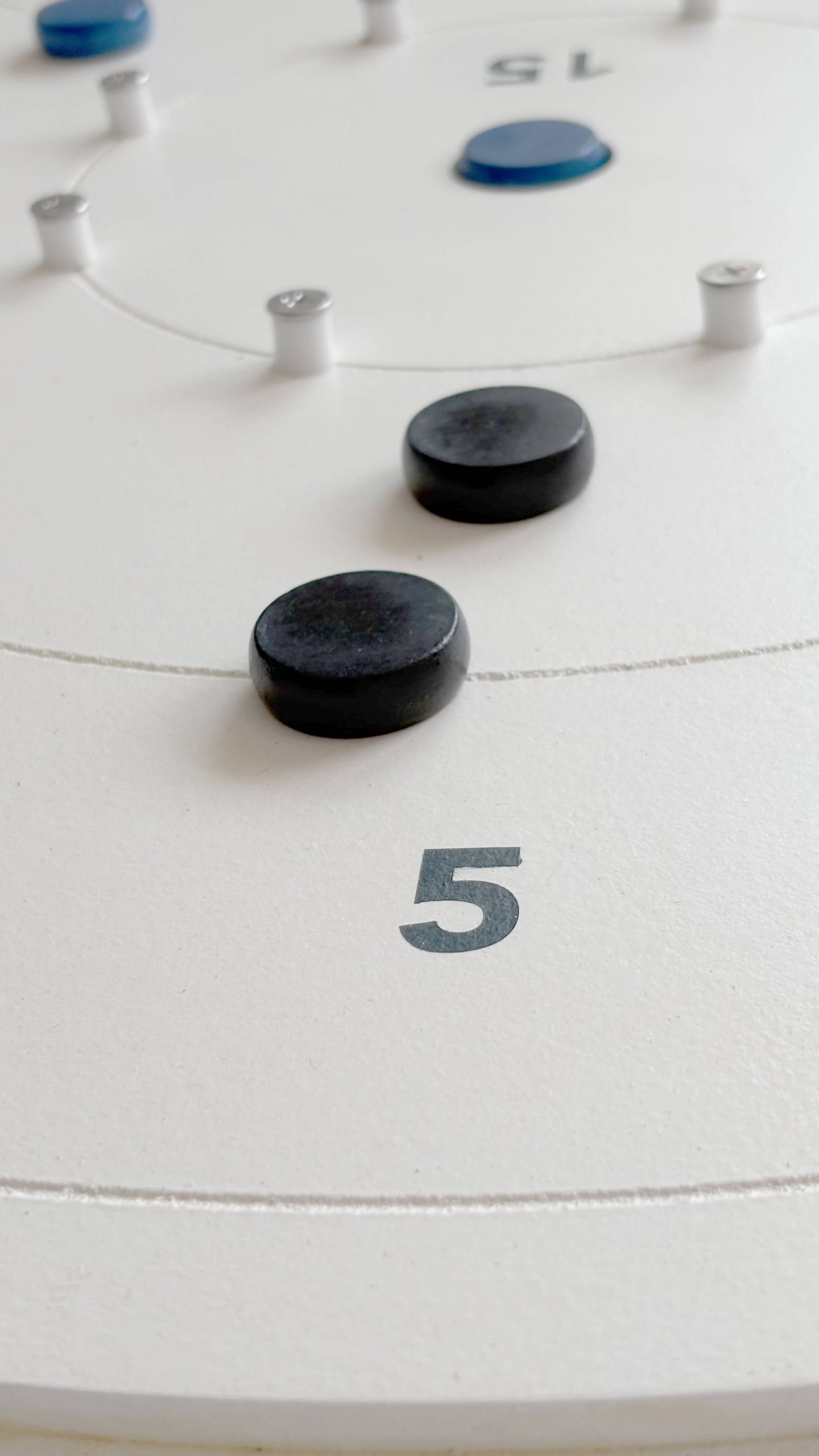 pivotes de acero inoxidable, únicos en su estilo dentro del mundo crokinole y recubiertos con goma blanca para que las fichas reboten.